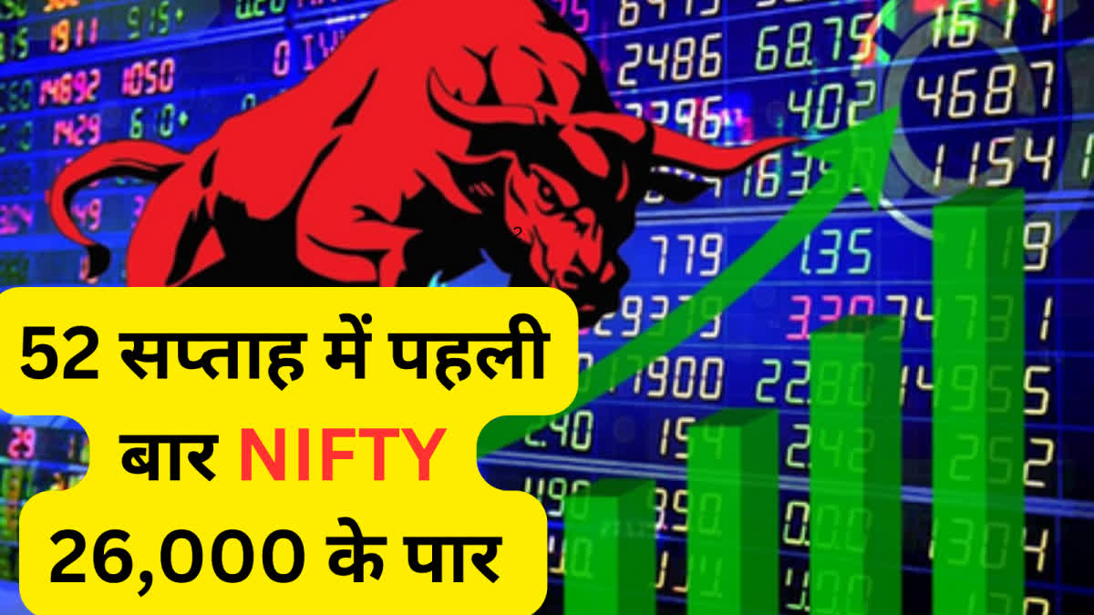 निफ्टी 52 हफ़्तों में पहली बार 26,000 के स्तर पर पहुंचा है. वहीं शेयर बाजार खुलने के साथ सेंसेक्स 85,000…
