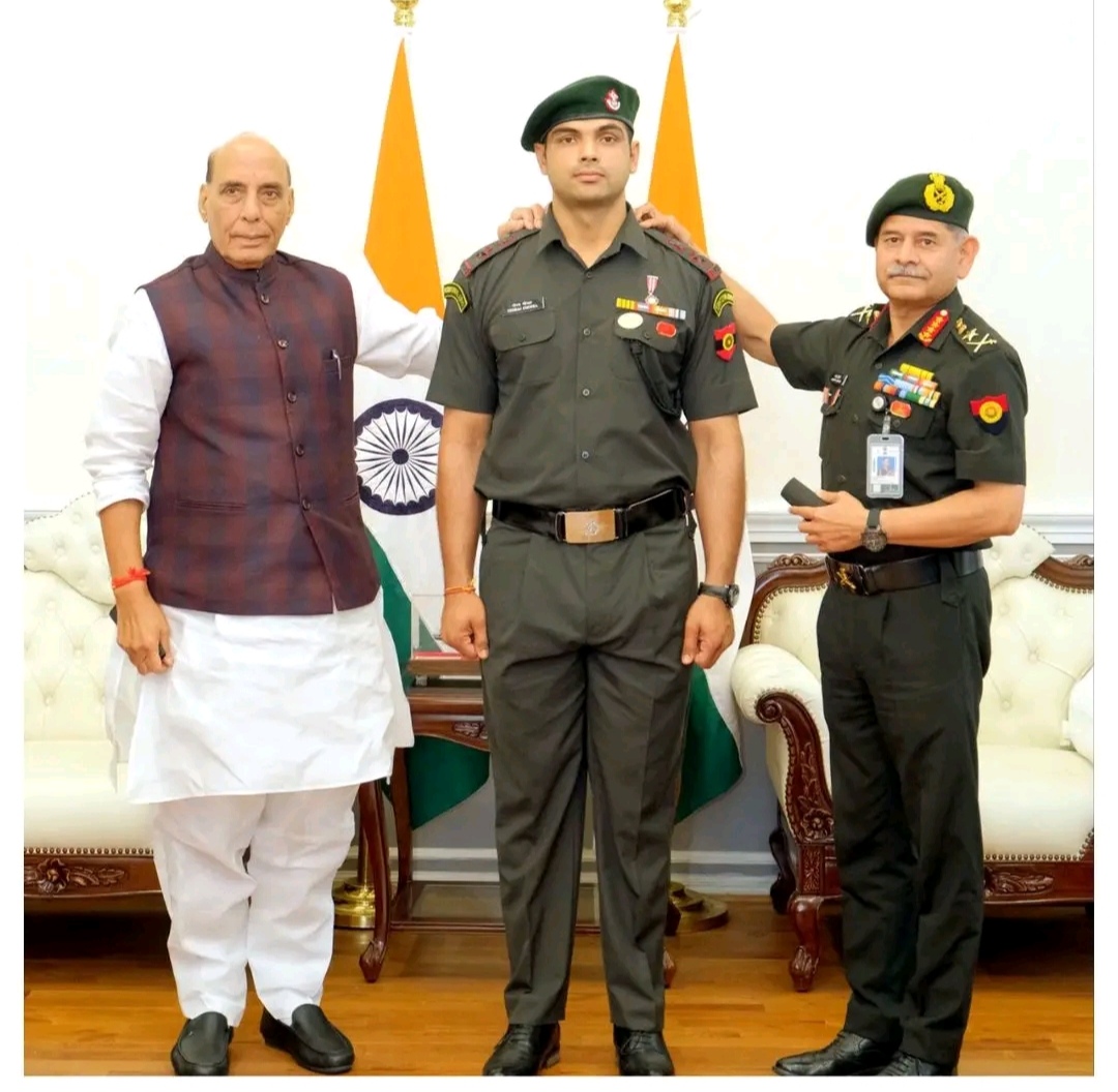 ओलंपिक पदक विजेता भाला फेंक खिलाड़ी नीरज चोपड़ा को रक्षा मंत्री राजनाथ सिंह और थल सेना प्रमुख जनरल उपेंद्र द्विवेदी…