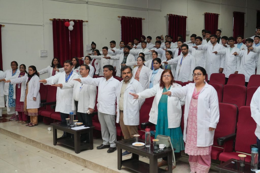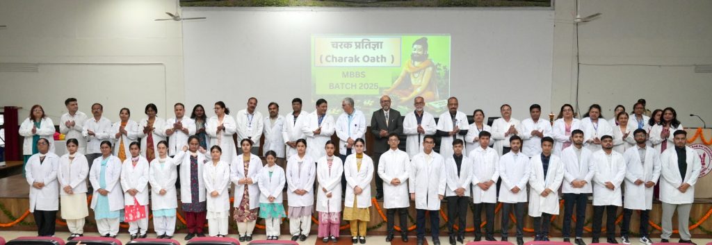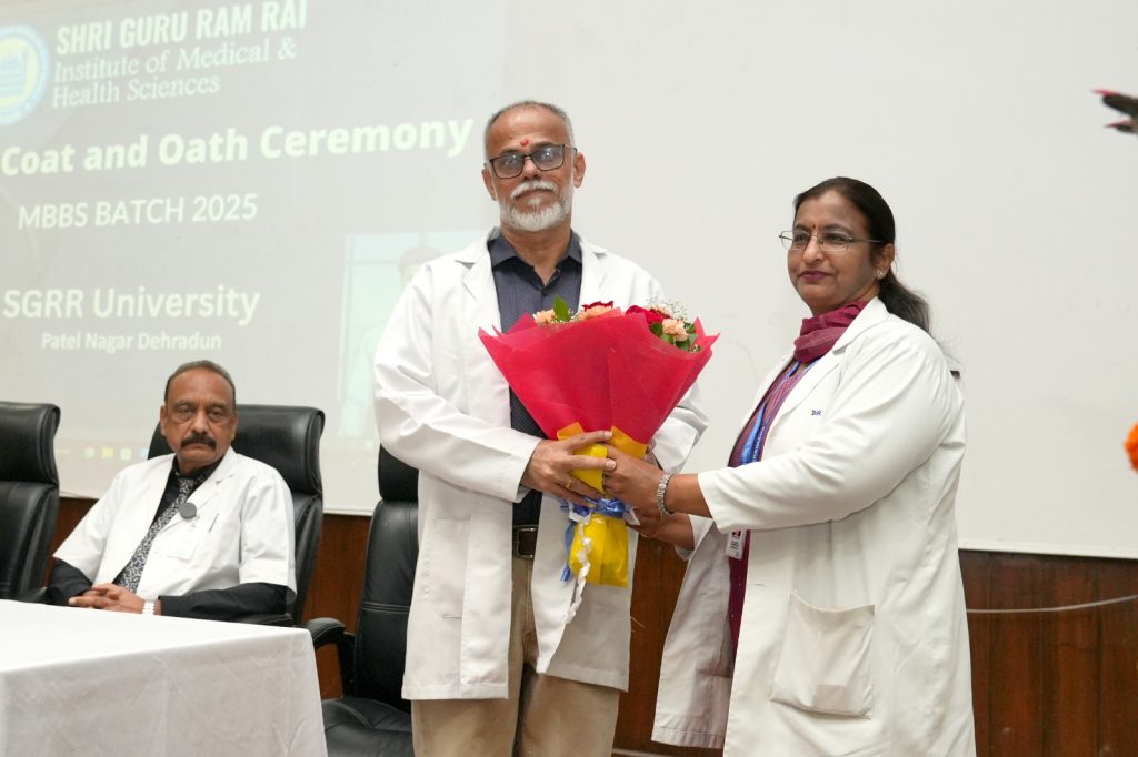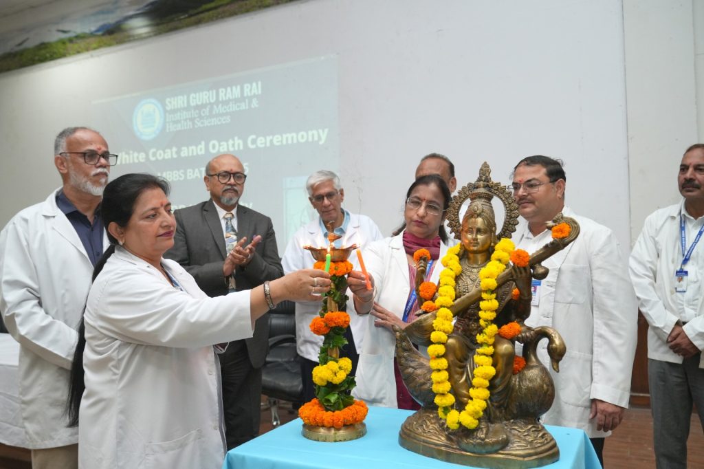 एस.जी.आर.आर.आई.एम.एण्ड एच.एस. के नव आगुंतक छात्र-छात्राओं की वाईट कोट सैरेमनी व चरक शपथ सम्पन्न